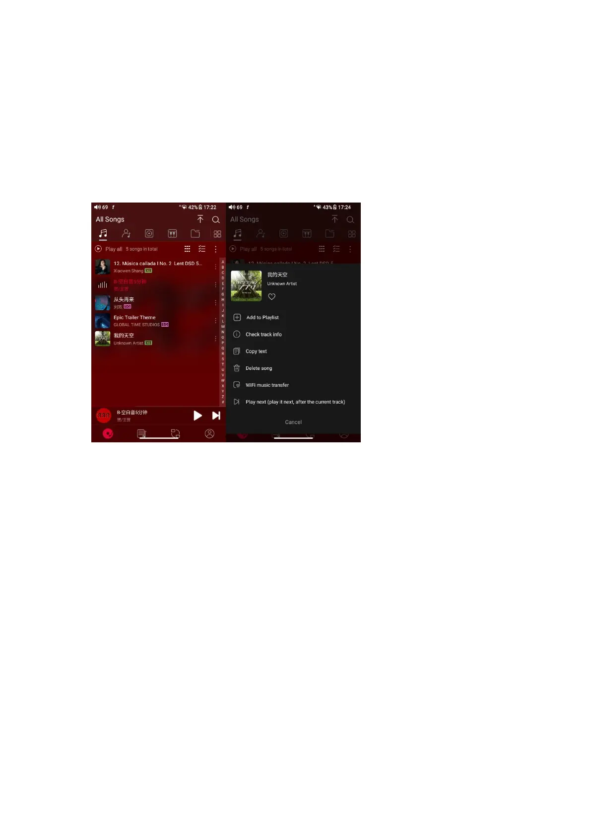 Tap the ┇ icon at the right corner of each track to wake up the hidden menu.