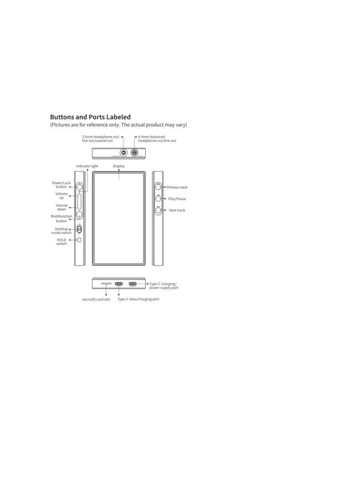 2) Power/Lock button: Hold the Power/Lock button to turn on the M21 while it