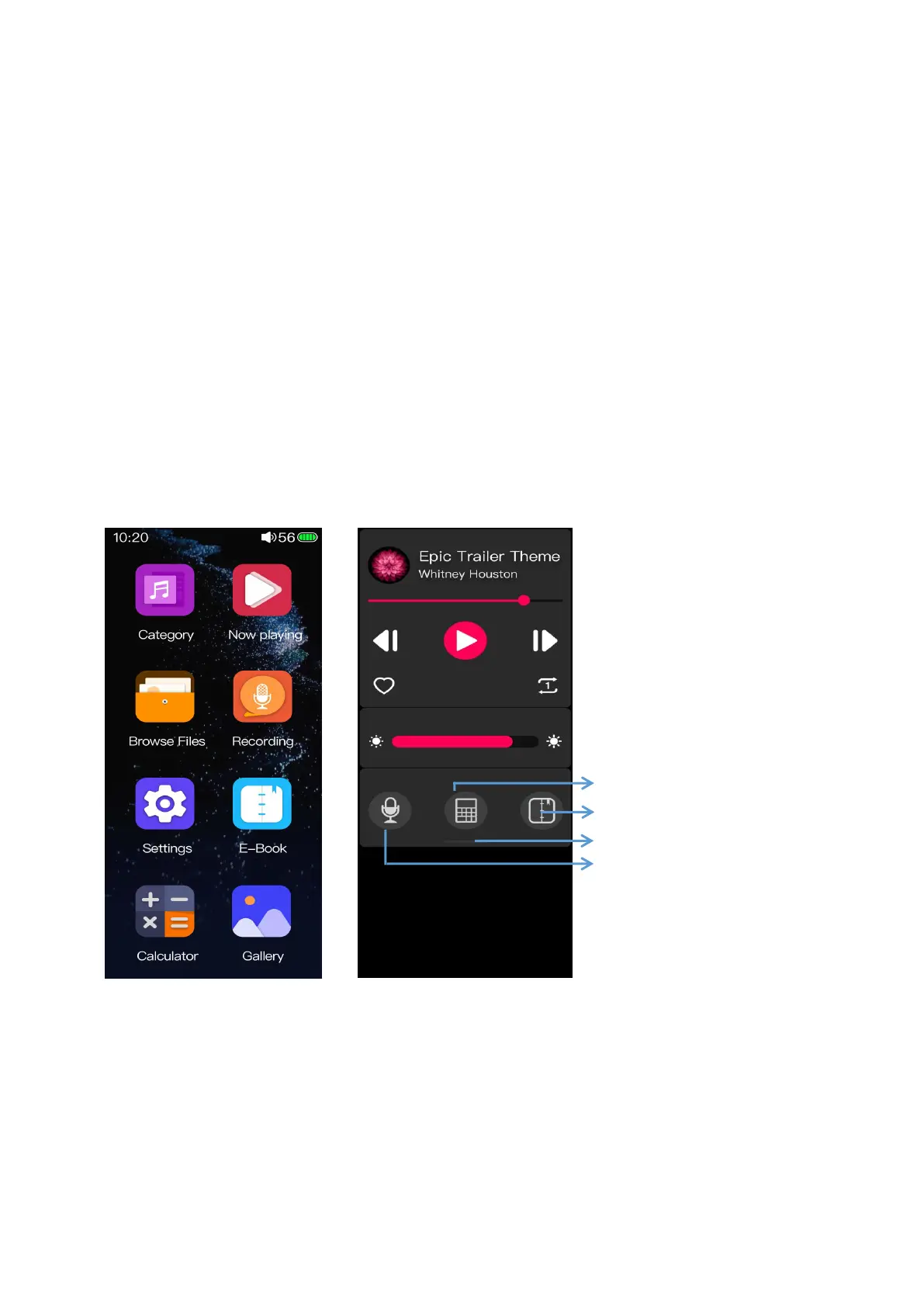 In the main screen page, click relating icons to enter into relating menu; swipe from the