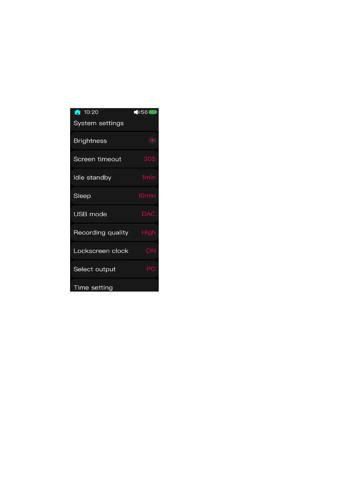 Click it to enter the setting menu. Slide the screen up an down or click +& - of the