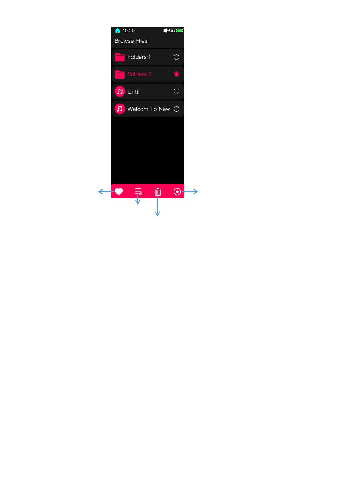 In the Browse files page, swipe from the right edge of the screen to the left can pop up