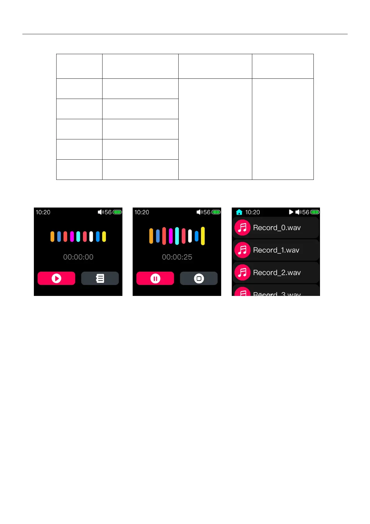 After clicking the 'Recording' icon from main page, the first picture above is displayed. Click the red icon in lower left