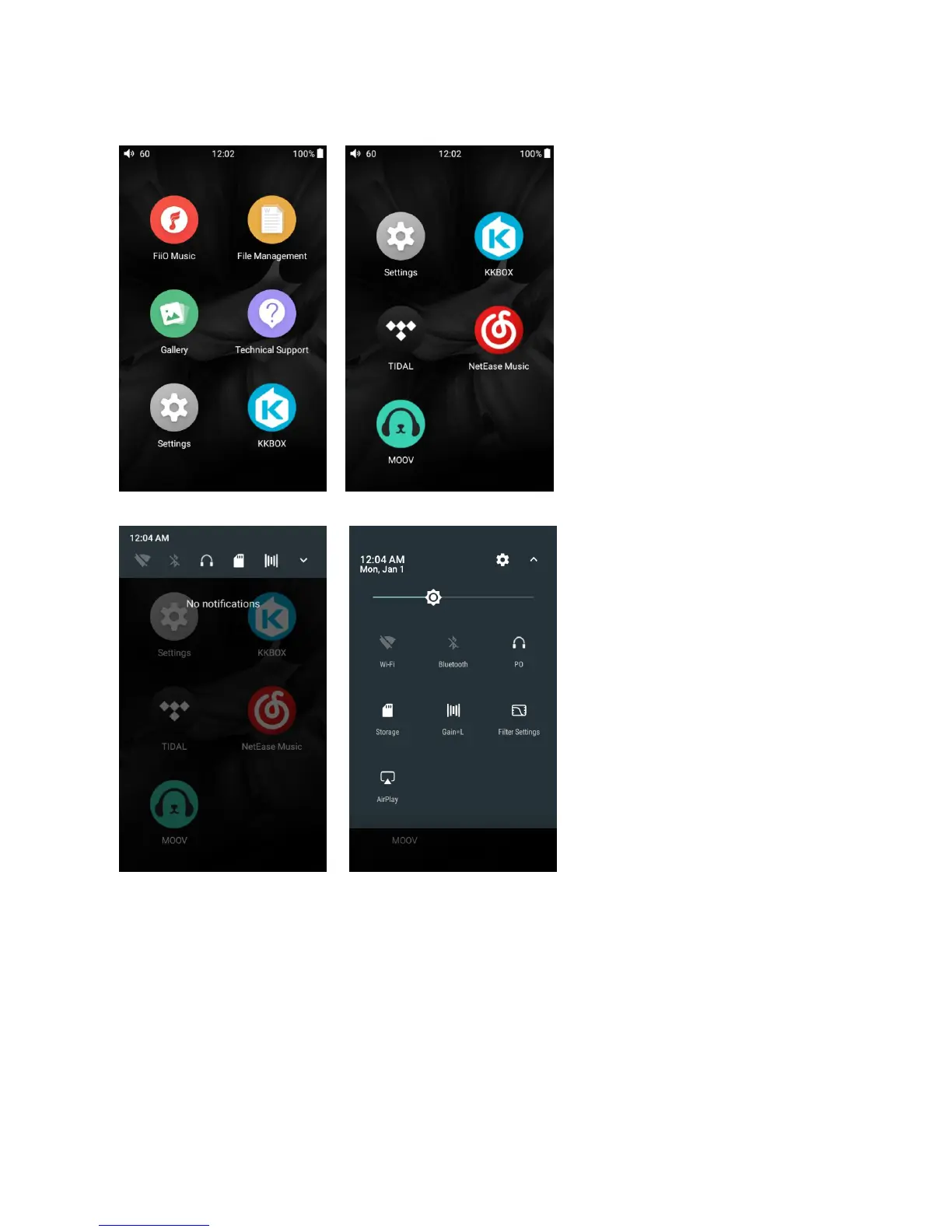 Fiio M9 - User Interface; Main Menu and Drop-down Interface
