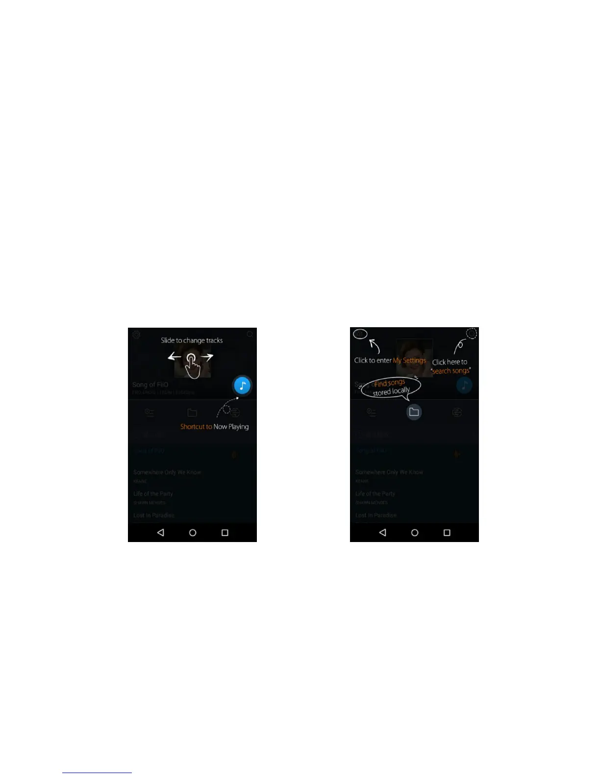 On first launch of FiiO Music, a pictorial guide to the app will appear. Below is a