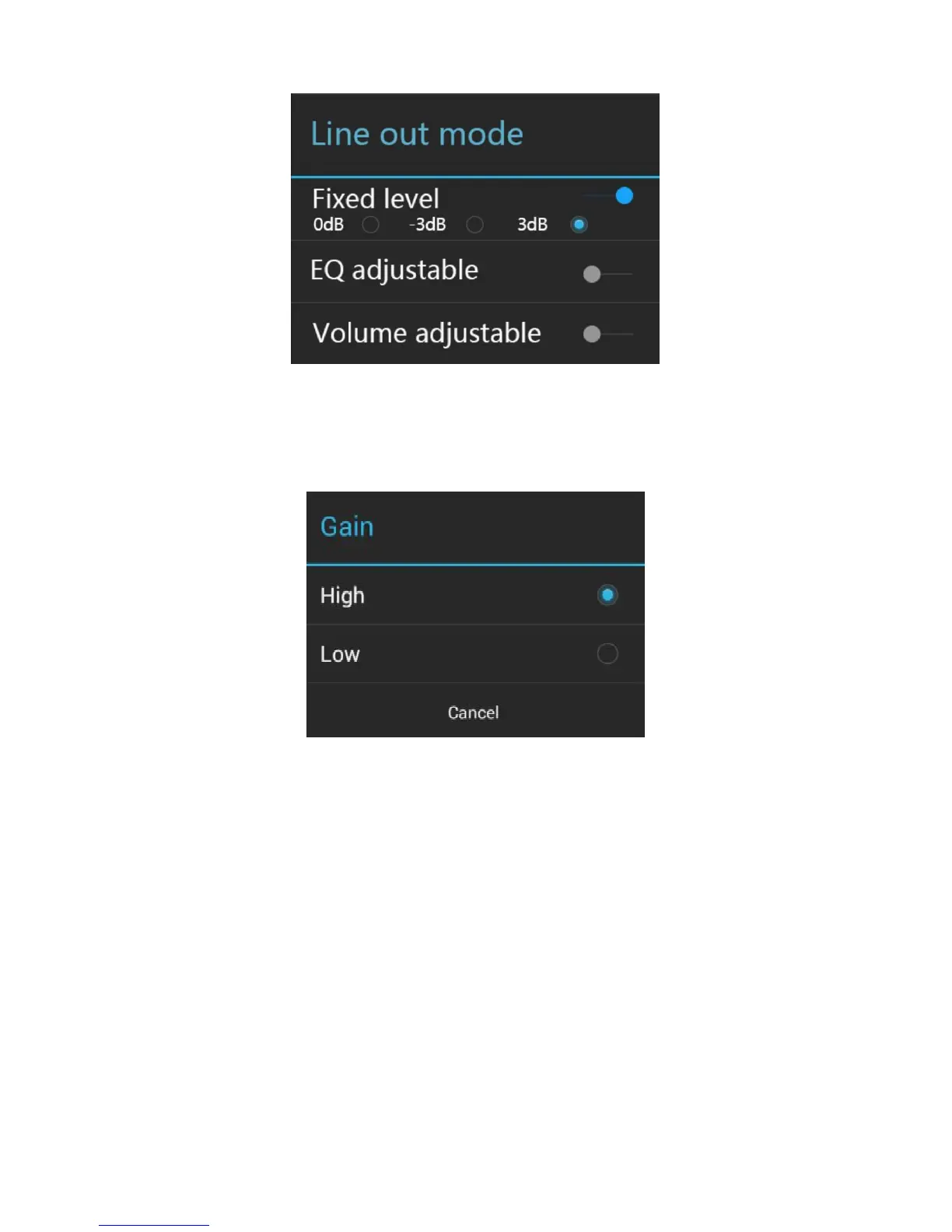 Sets the gain level of the headphone output to be either High (high volume) or Low (low volume).