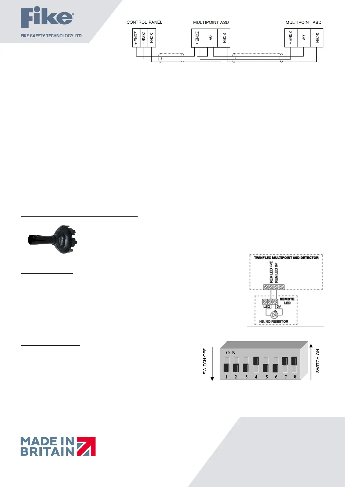 Twinex Multipoint ASD Detectors can be mixed on the same zone as other types of Twinex device (e.g. Twinex Call-points and