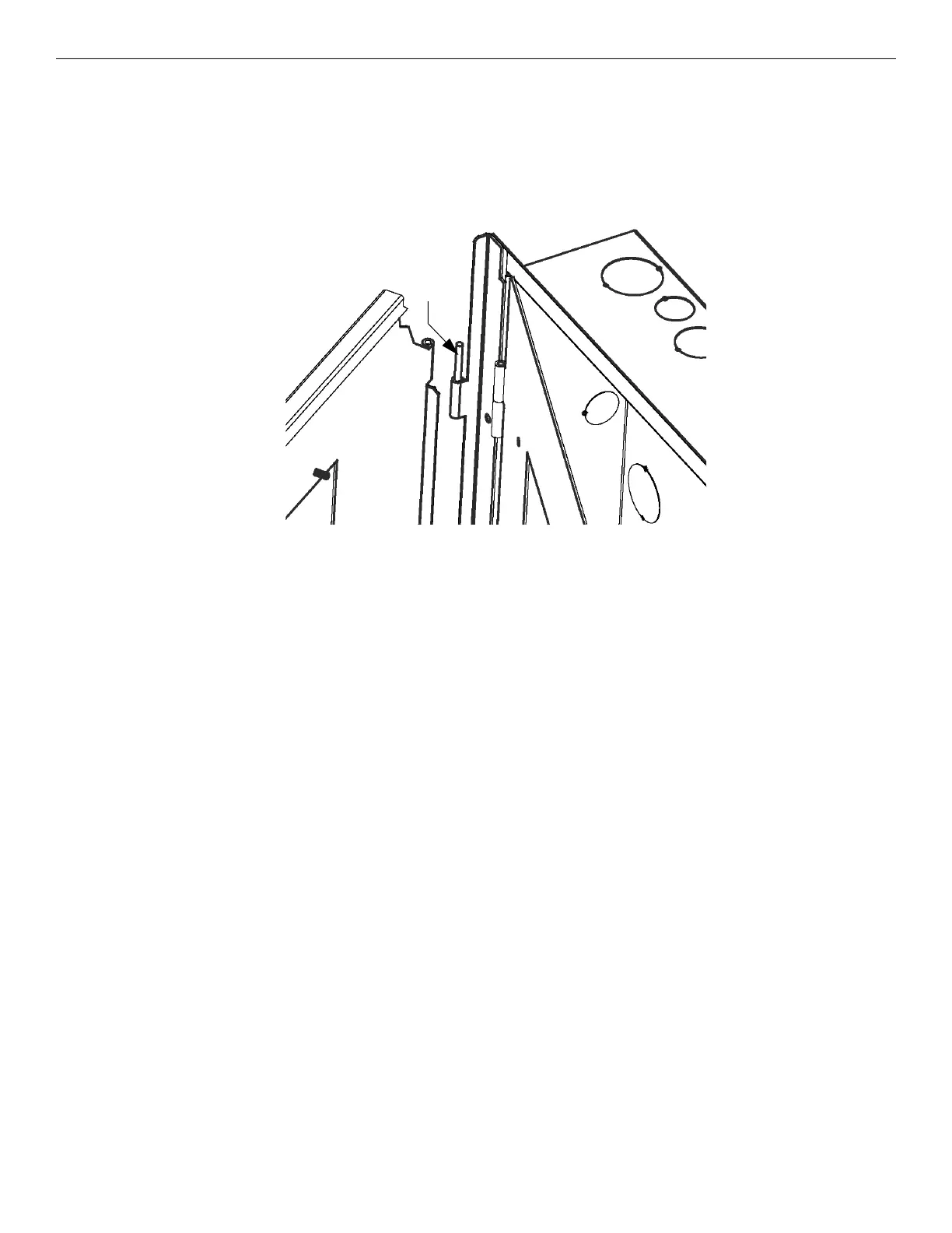 3. Slide the door or dead front over two pins in the hinge bracket of the base. The outer hinge pins are for the door, the inner hinge pins are