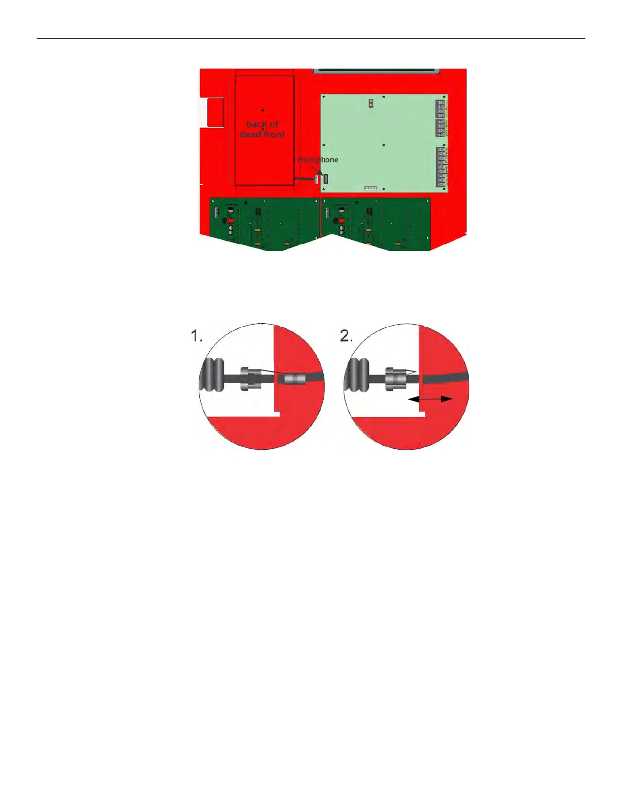 2. Insert microphone cord through hole at the bottom of the dead front panel. See Figure 4.9.