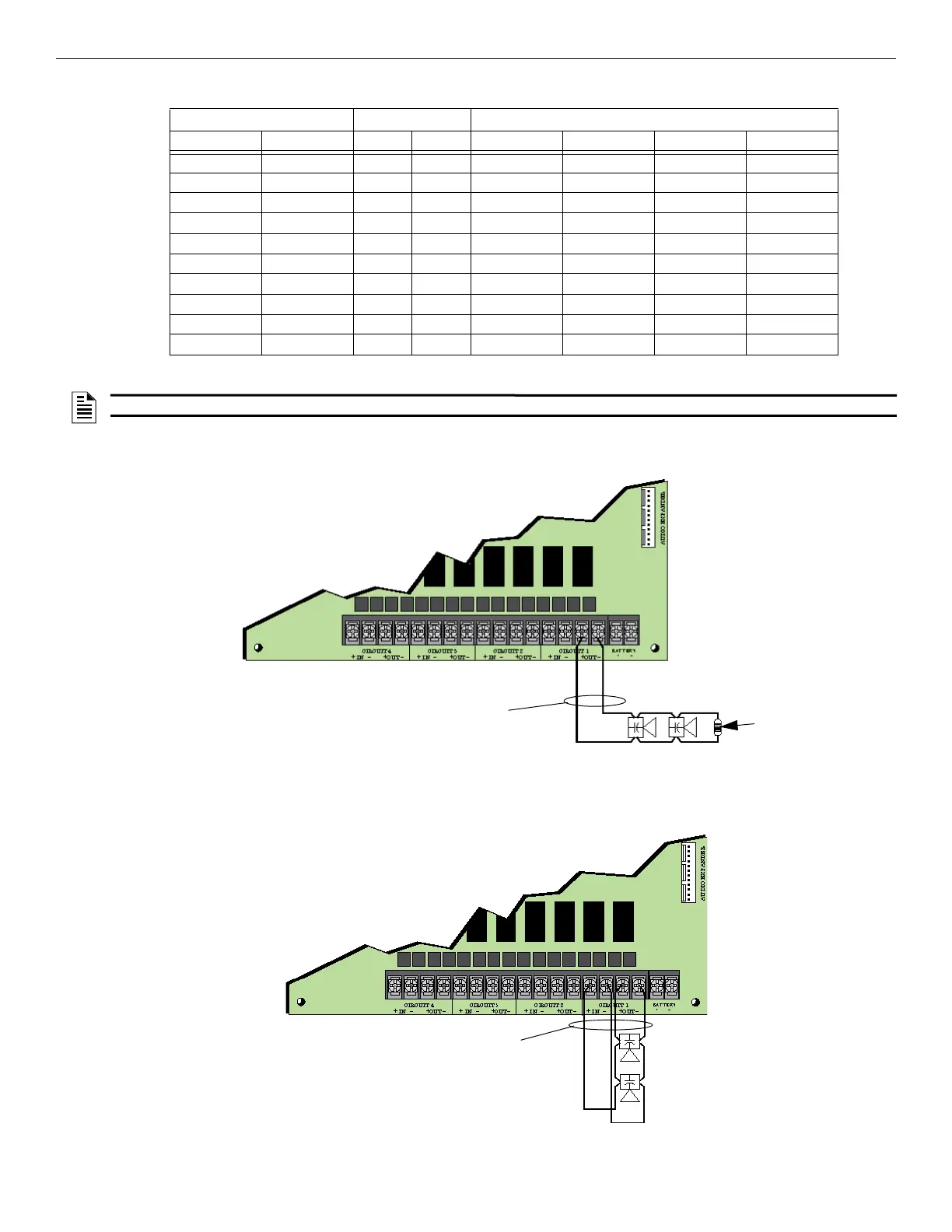 Figure 4.35 illustrates how to wire speakers to the control panel using Class A wiring.