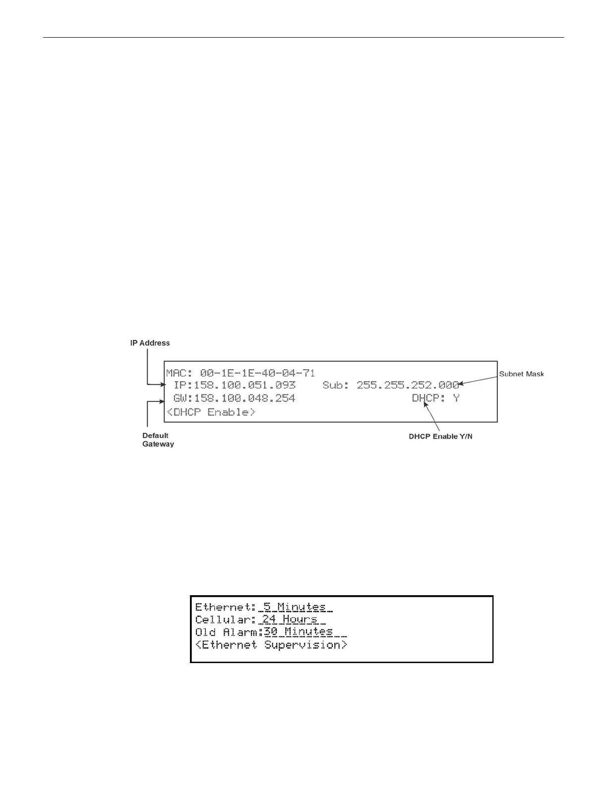 • Ethernet: None, 75 seconds, 90 seconds, 3 minutes, *5 minutes, 1 hour, 24 hours,30 days.
