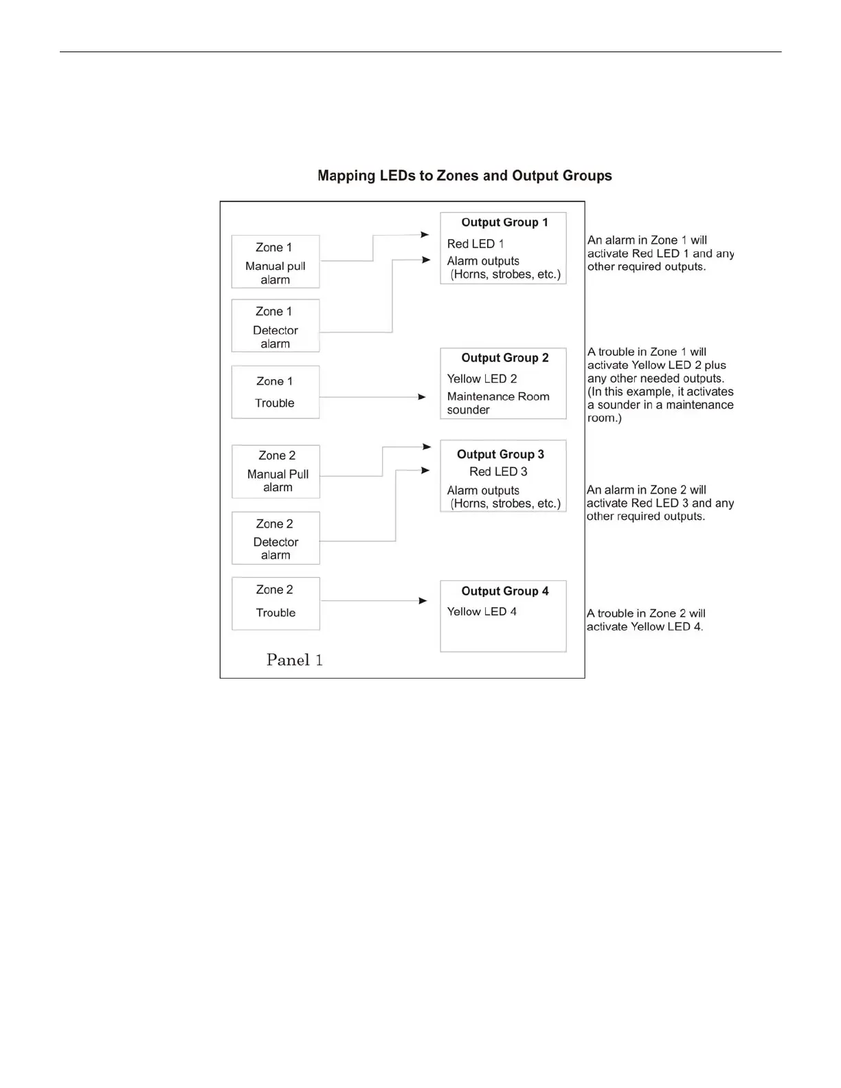 • one output group for alarms • one output group for troubles