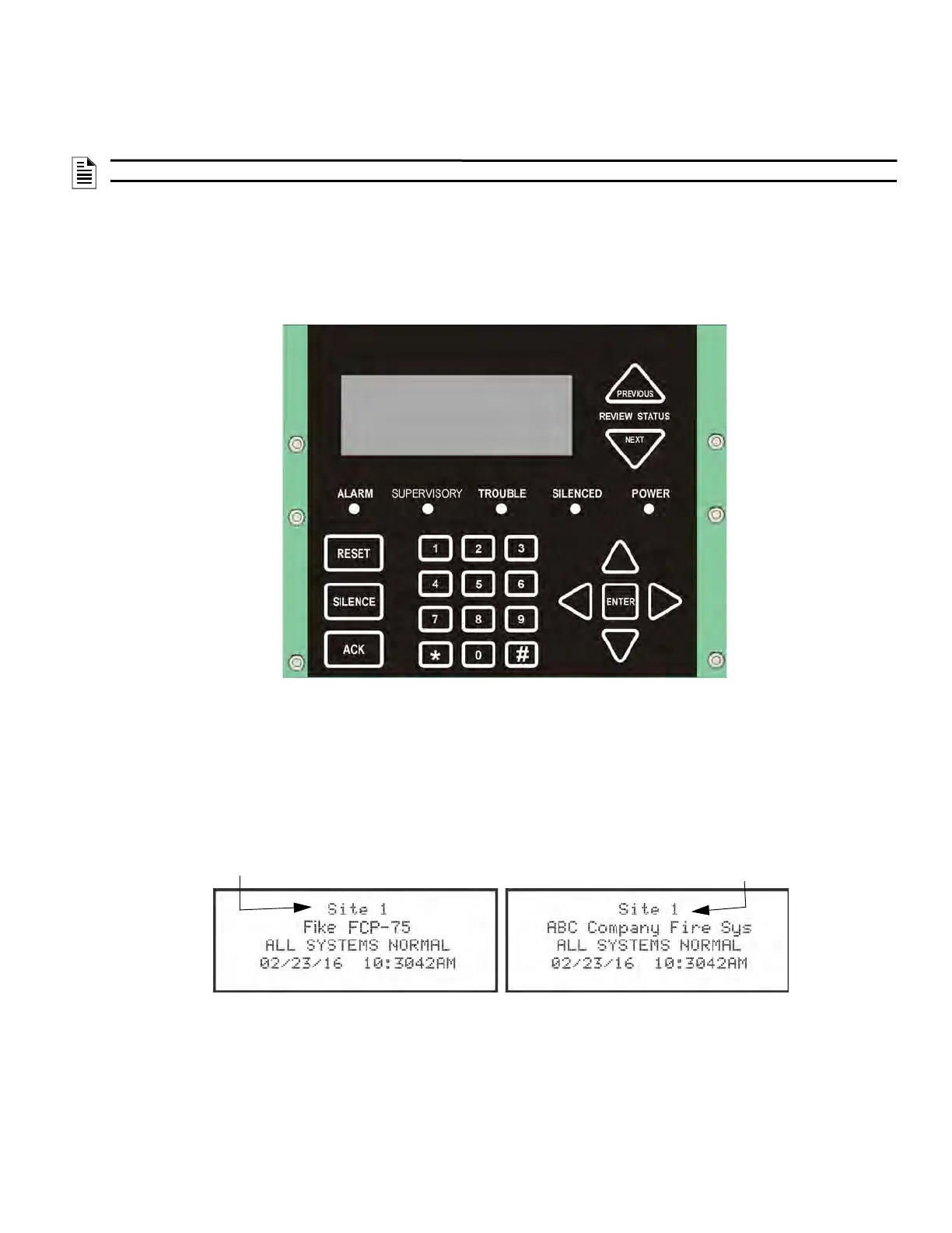 The control panel LCD displays system messages, annunciates alarms, supervisories and troubles; provides status information; and prompts