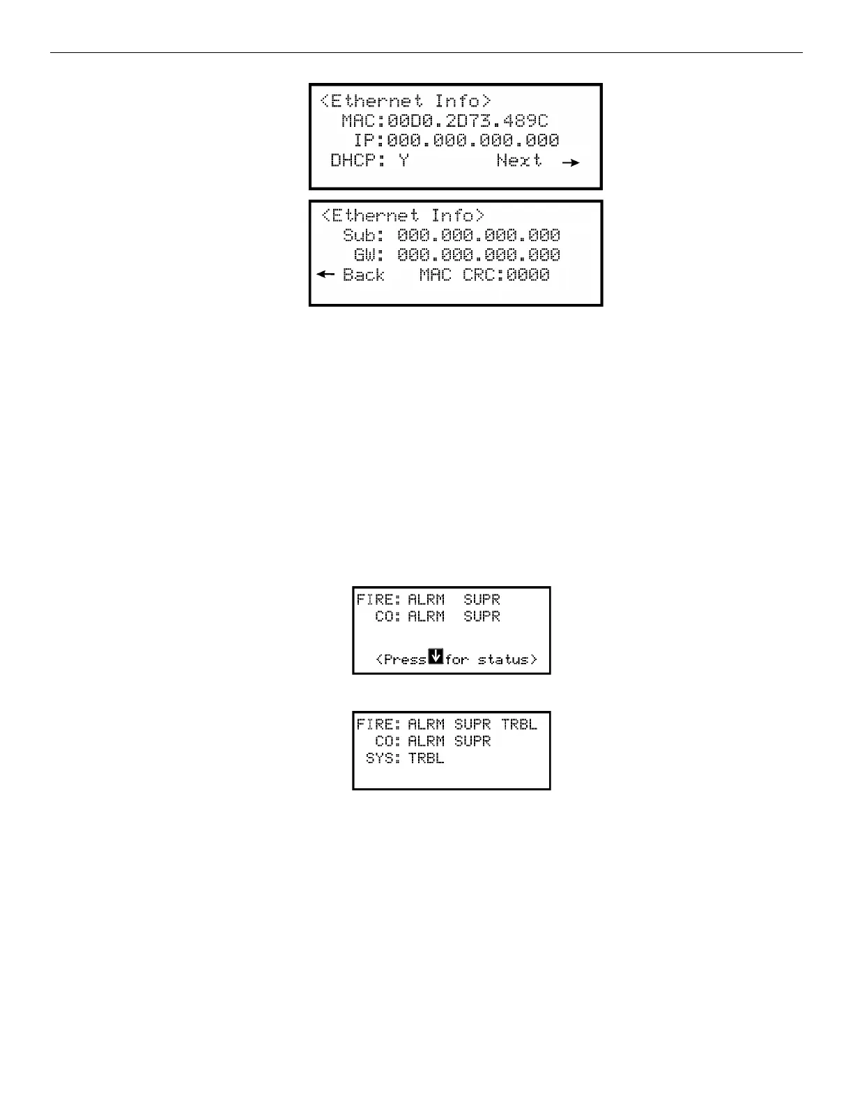 When looking at the LCD, the screen will display FIRE for the “Fire System”, CO for the “CO System”. The highest priority event will dis-