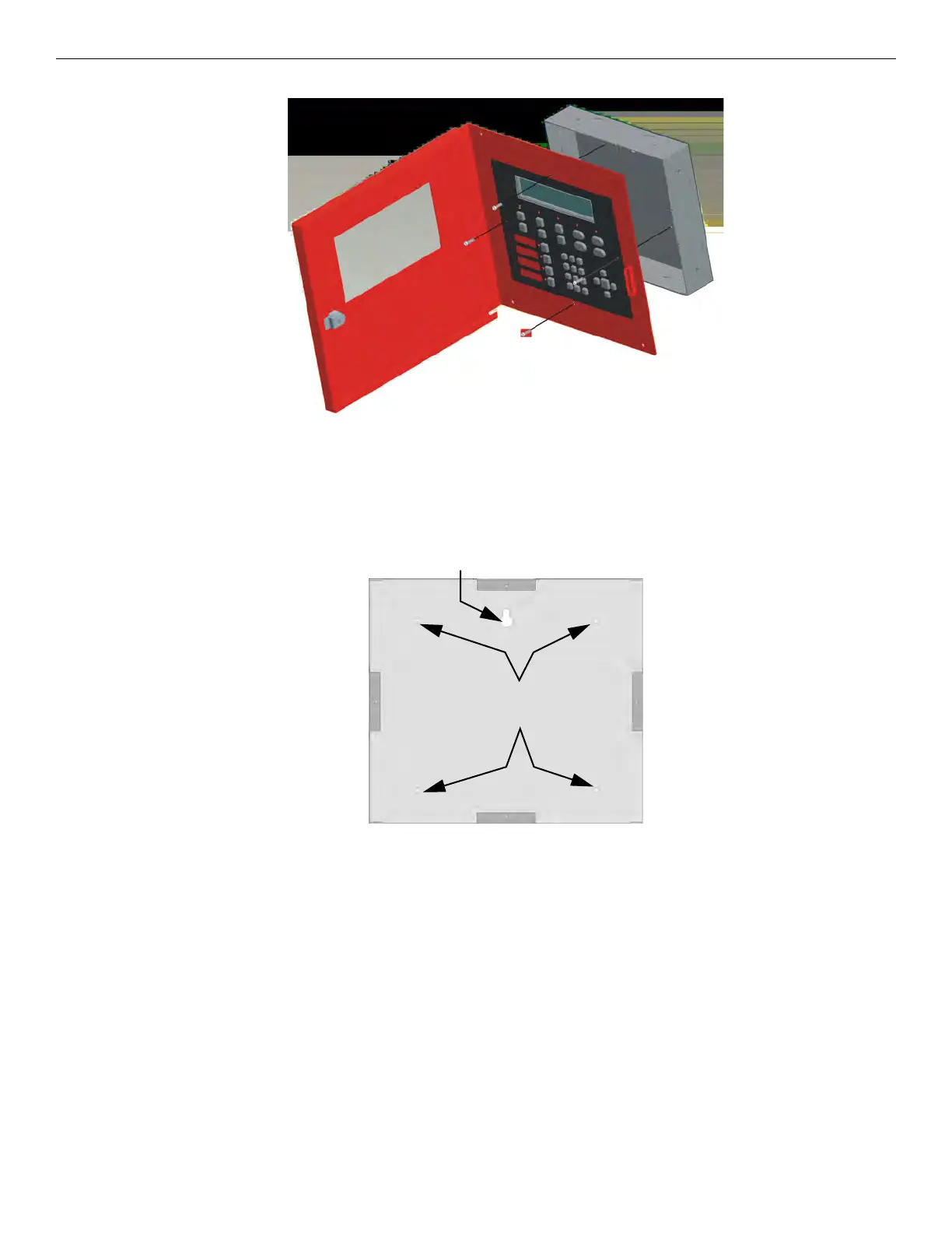 4. Attach the annunciator and door assembly to back box as shown in Figure 4.12 using the supplied screws.