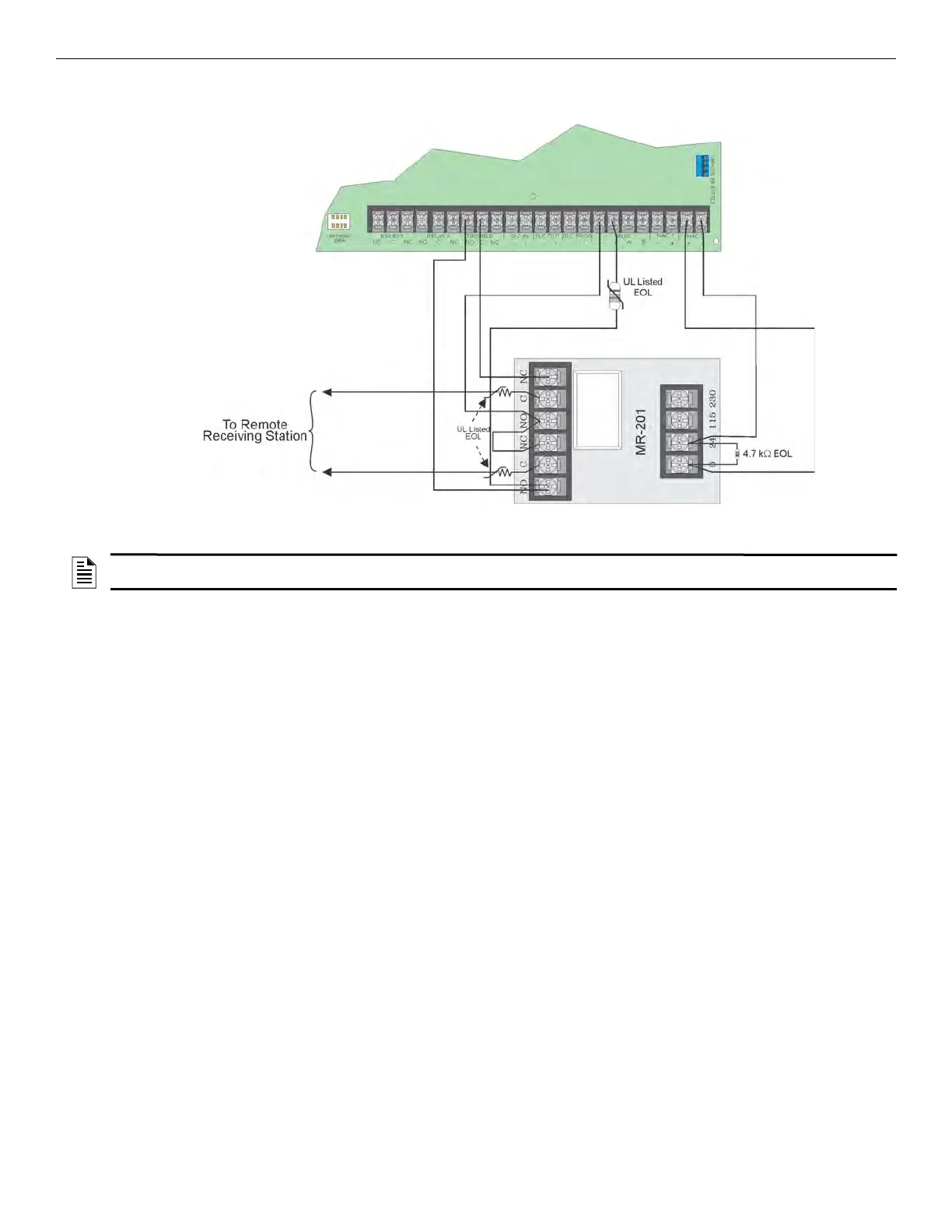 NOTE: If you need to transmit supervisories or trouble conditions, additional relay modules must be added. Use relay 1 to transmit supervisory
