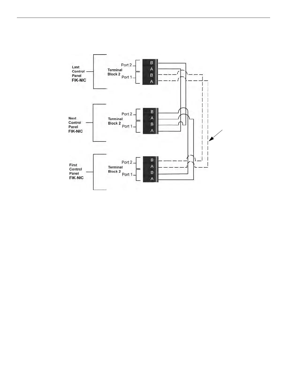 Unshielded twisted pair wiring between multiple panels is shown in Figure 5.55. Class A wiring is shown with a dotted line.