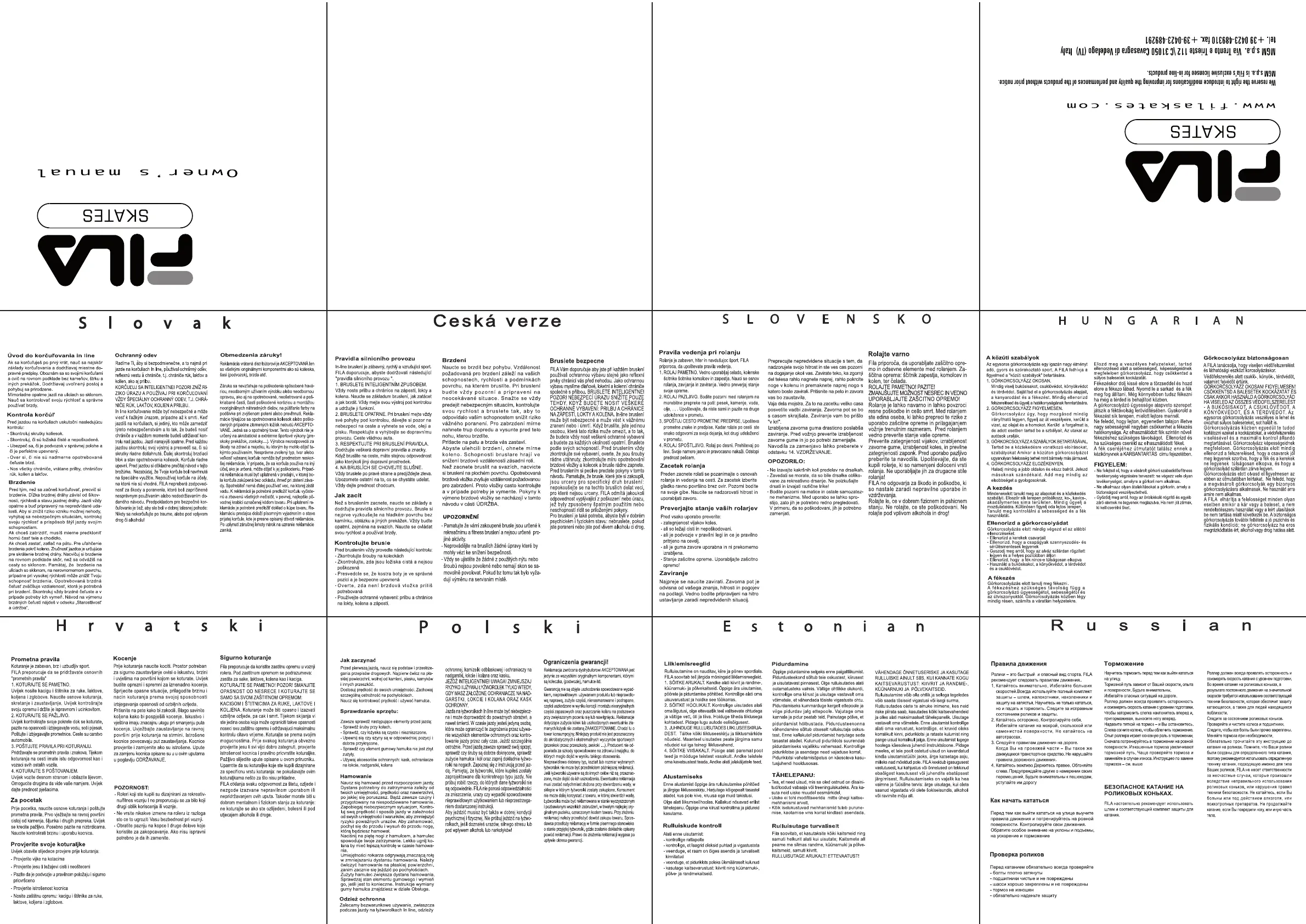 Predloge za varovanje okolja najdete v navodilih, ki se nahajajo na www.filaskates.com. Védje a környezetét és ennek érdekében kérem töltse le a korcsolya használati útmuta-