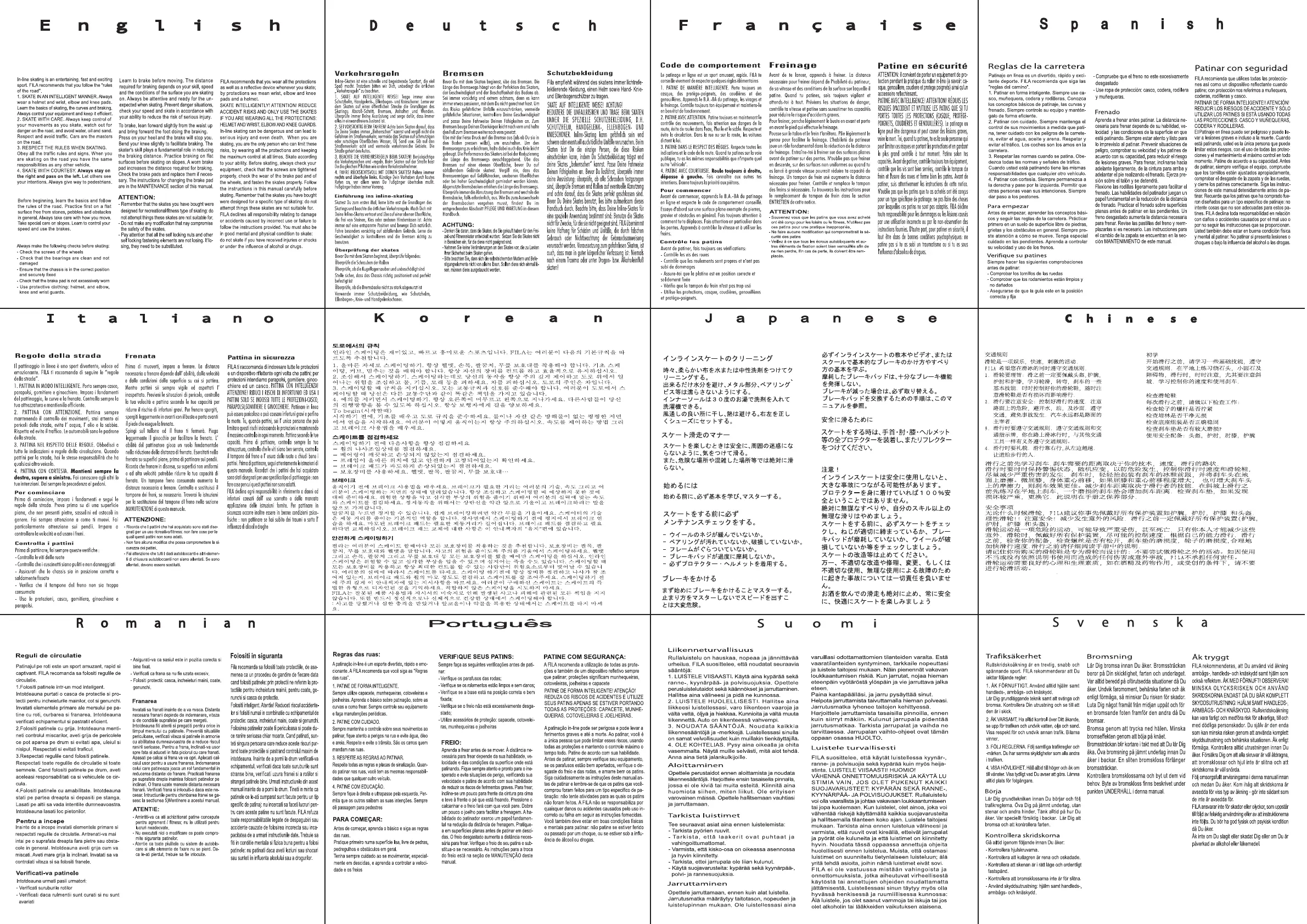 環境保護のため、スケートの取扱説明書は弊社のサイトwww.filaskates.com から