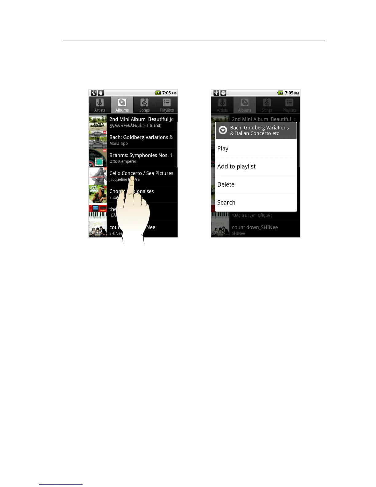 You can check additional options by tapping and holding down a desired menu or item.