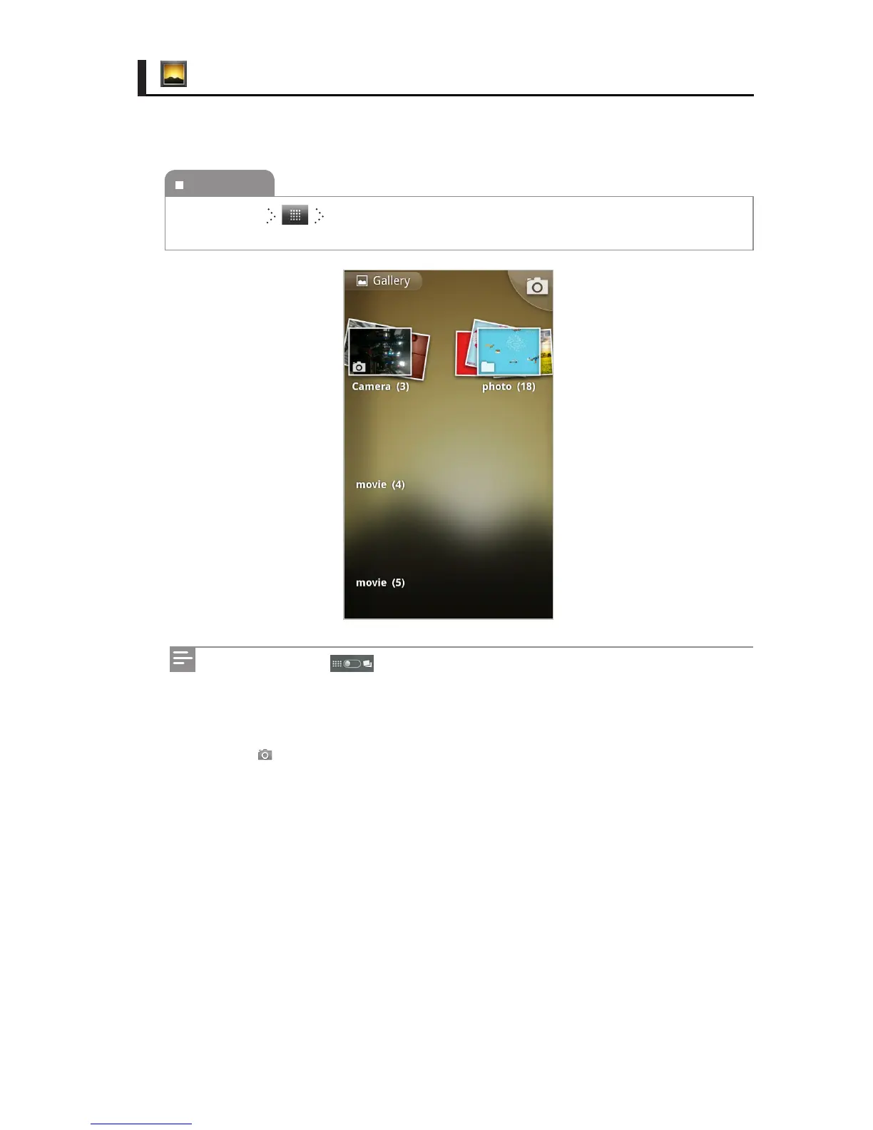 You can view and manage the pictures and videos saved in the memory. You can view the