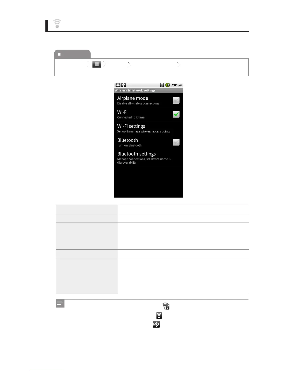 When the Wi-Fi network is connected, appears at the top of the screen.