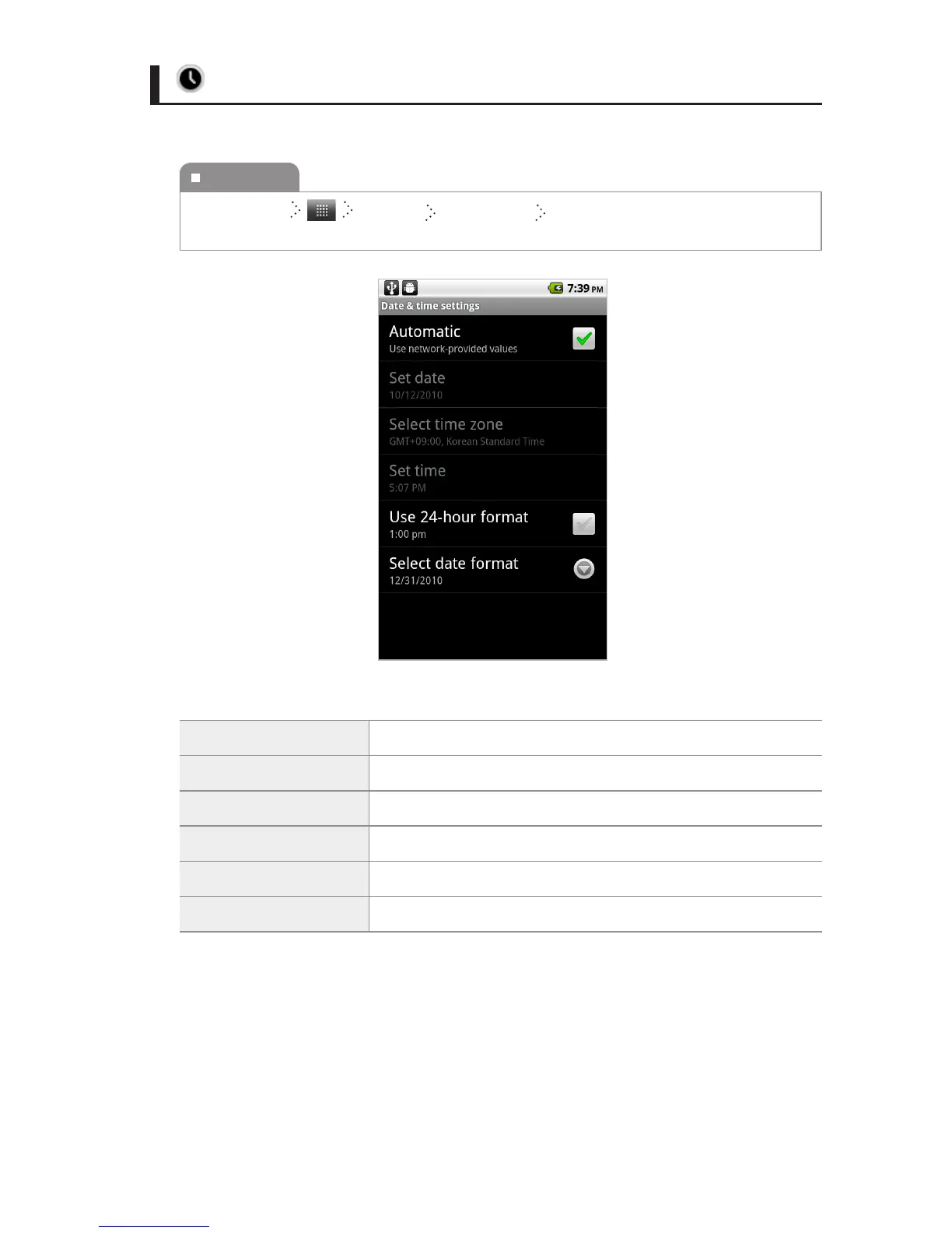 Automatic You can set the time use network-provided values.