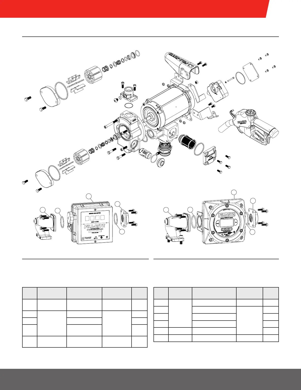 oder 900DP, einen Einlasszählerflansch, einen Auslasszählerflansch, die zugehörigen