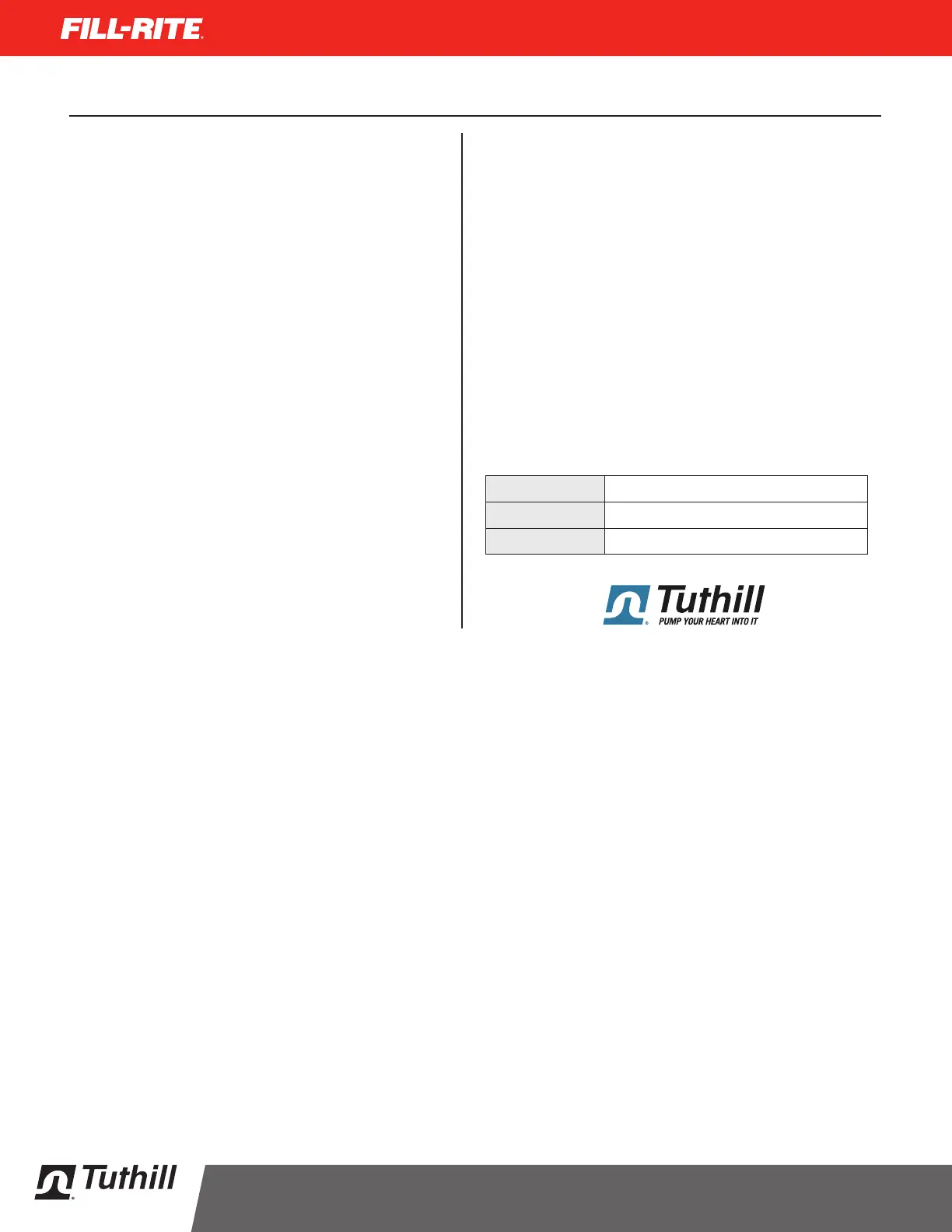 garantía y productos, comuníquese con Servicio al Cliente de Tuthill al
