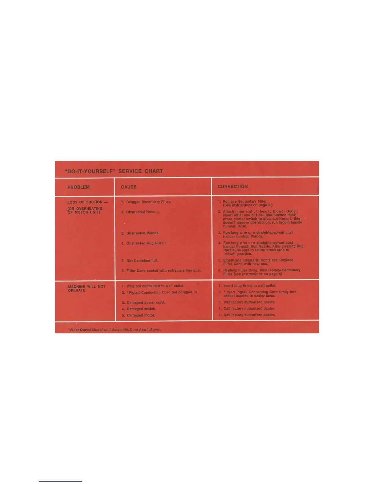 Filter Queen 31X - Service Chart