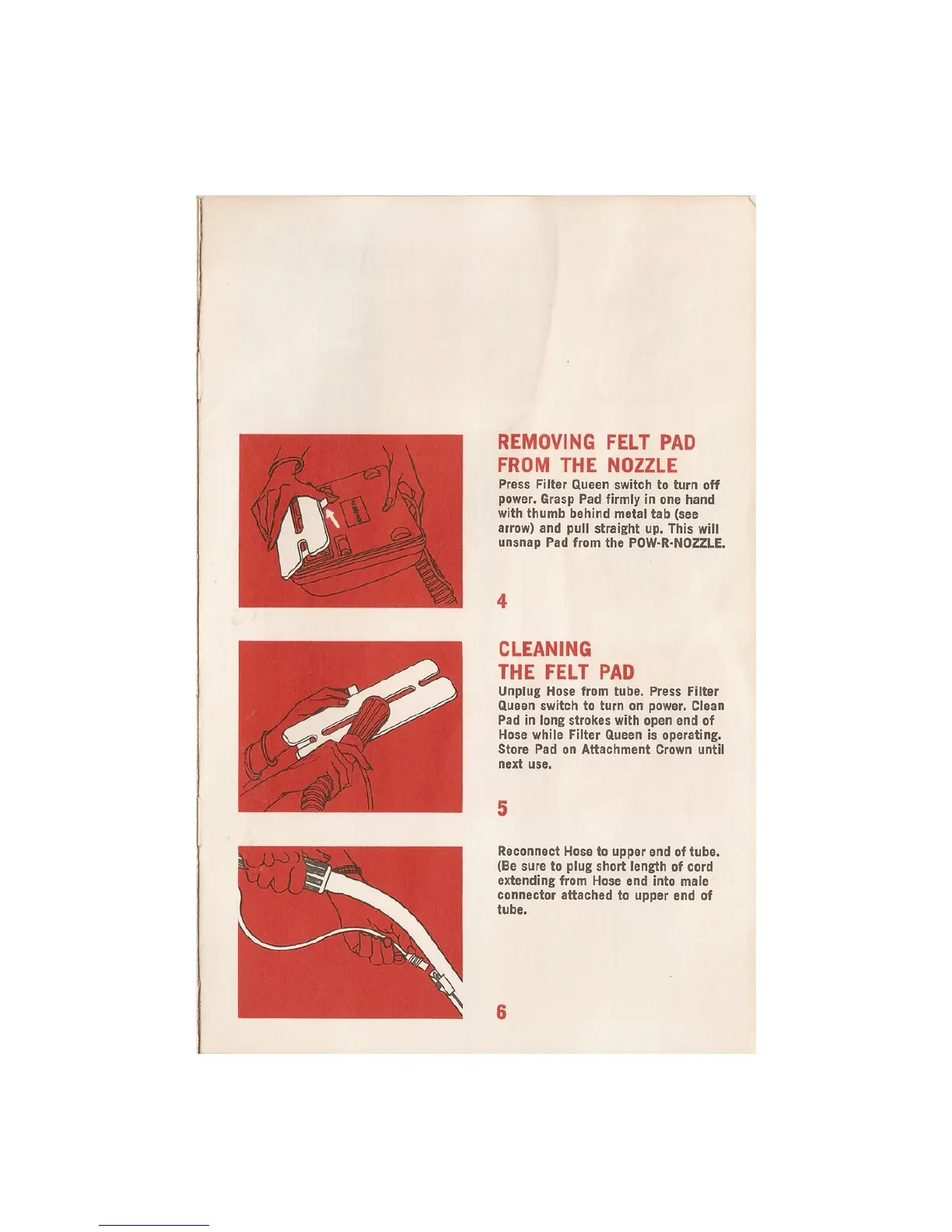 Filter Queen 31X - Removing Felt Pad from the Nozzle; Cleaning the Felt Pad