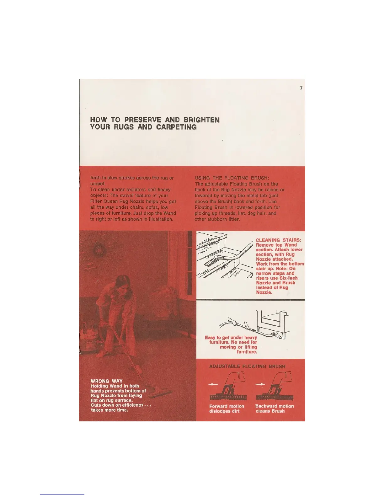 Filter Queen 31X - How to Preserve and Brighten Your Rugs and Carpeting; Using the Floating Brush; Adjustable Floating Brush