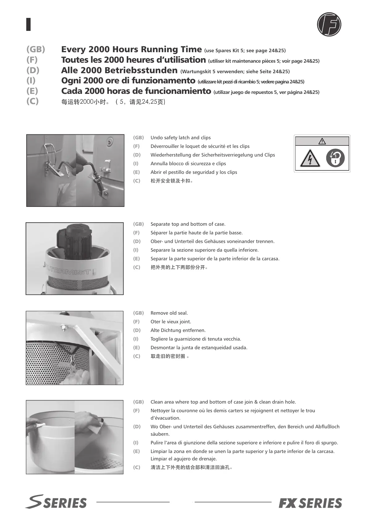 (GB) Every 2000 Hours Running Time (use Spares Kit 5; see page 24&25)