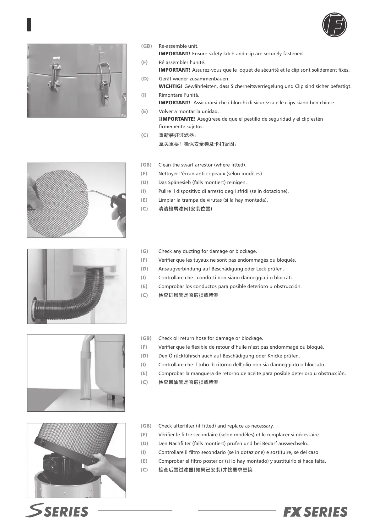 (GB) Check afterfilter (if fitted) and replace as necessary.