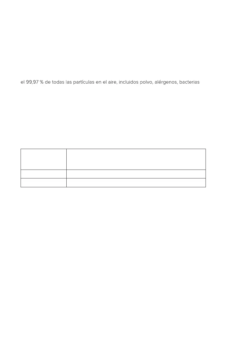 *Con un tamaño mínimo de 0,3 micrones de aire que pasa a través de los