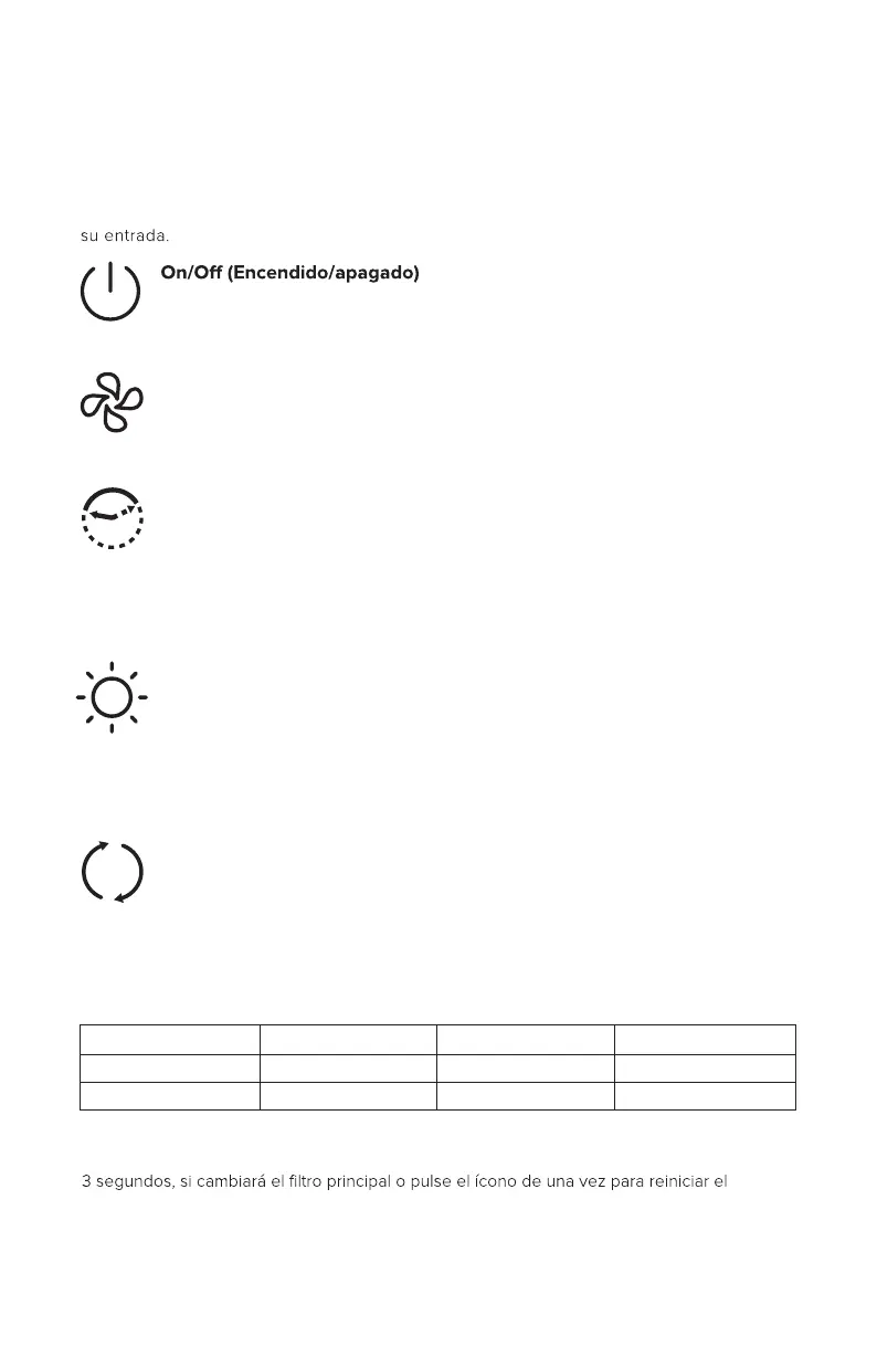 de la luz en el purificador de aire. Para volver a encender las luces de la pantalla,