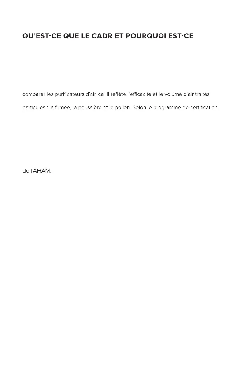 (AHAM), la taille recommandée de la pièce est directement liée au CADR pour la