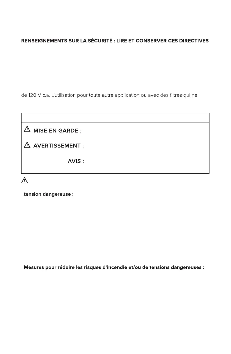• Mesures pour réduire les risques de choc, d’incendie, d’explosion et/ou de