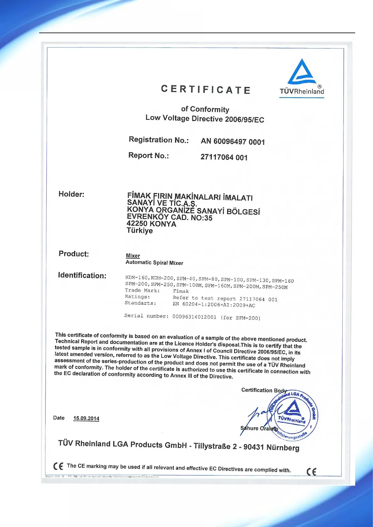 DD.009 / Rev. No 00 SPİRAL MİKSER MAKİNASI