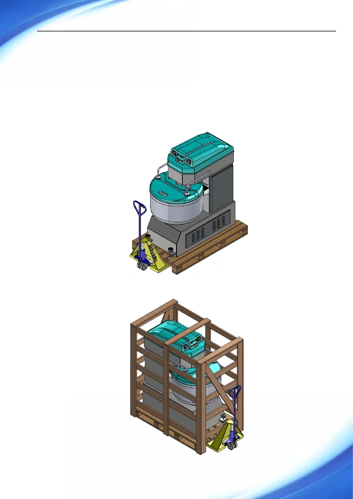 Thanks to the wheels the machine can easily be placed anywhere. It is transported on wooden pallet or