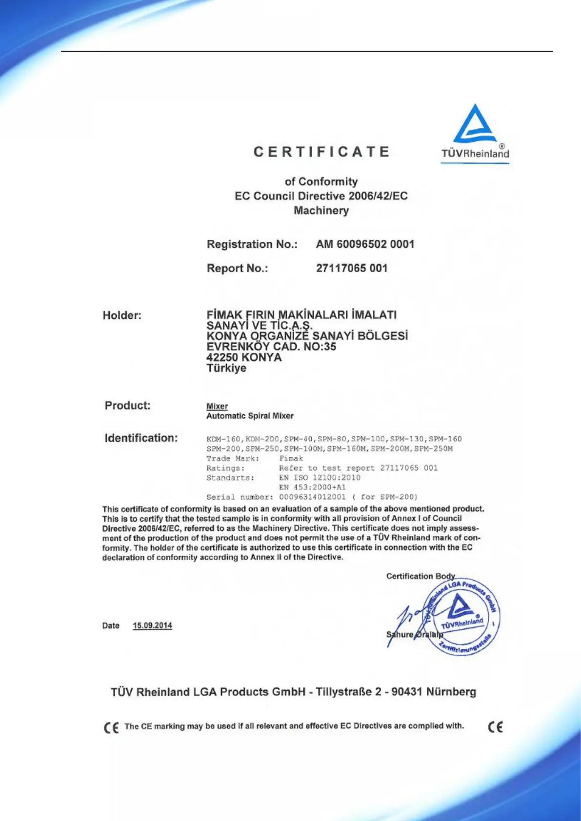 DD.009 / Rev. No 00 SPİRAL MİKSER MAKİNASI