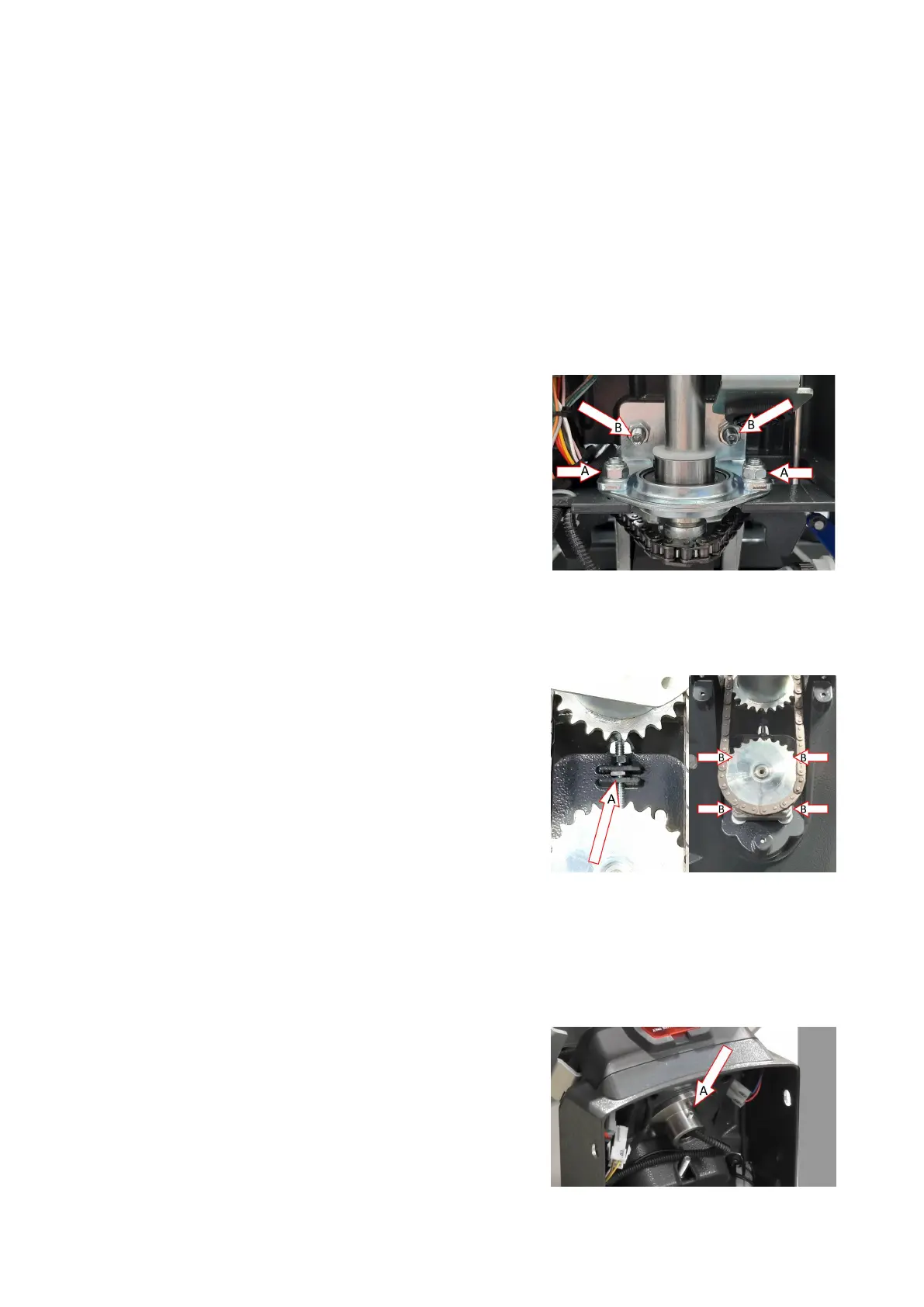 Loosen the lock nuts of the upper headless screws (B) and adjust