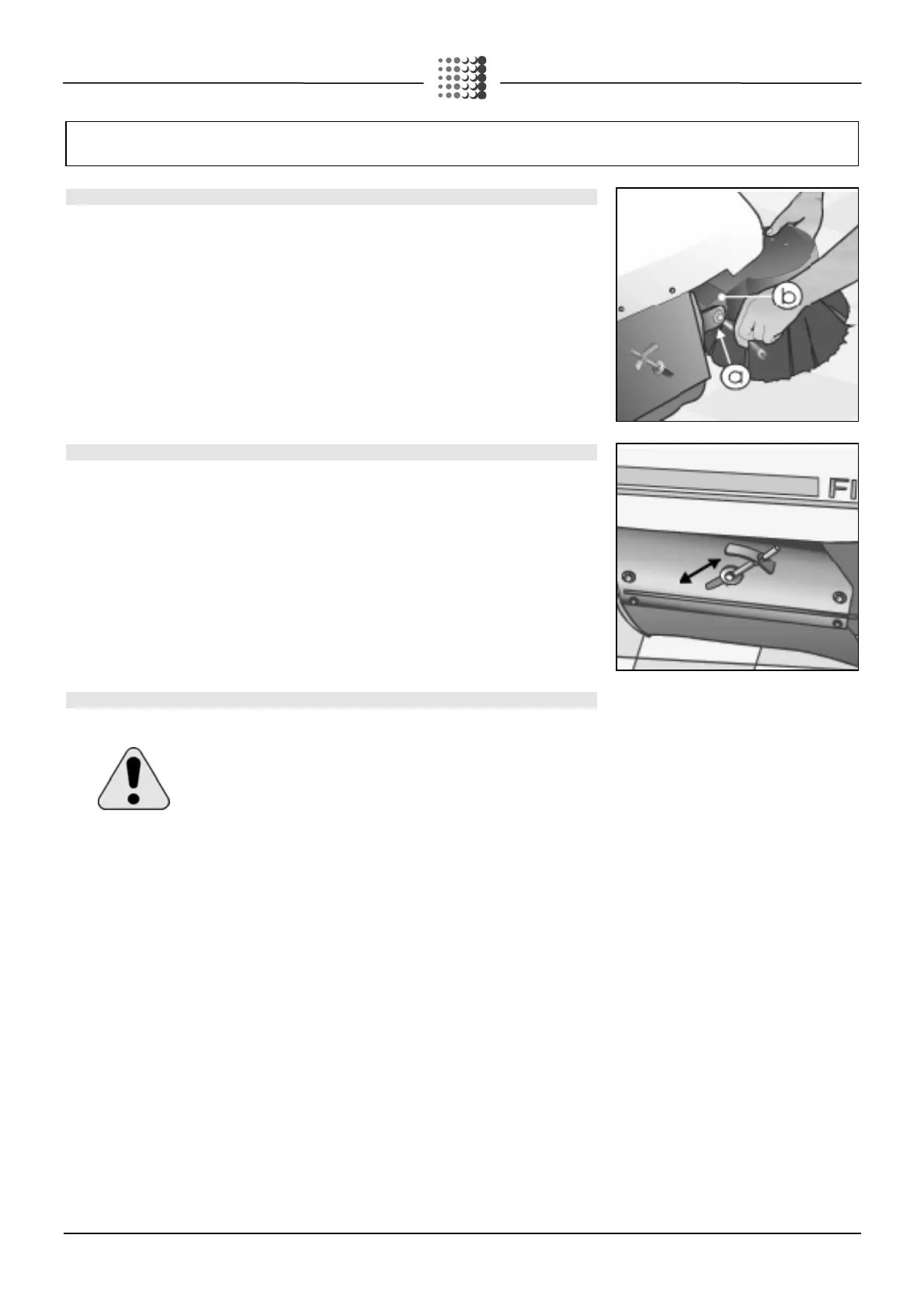 The brush height adjustment is made by means of screw (a) inside the support bracket (b) of the brush.