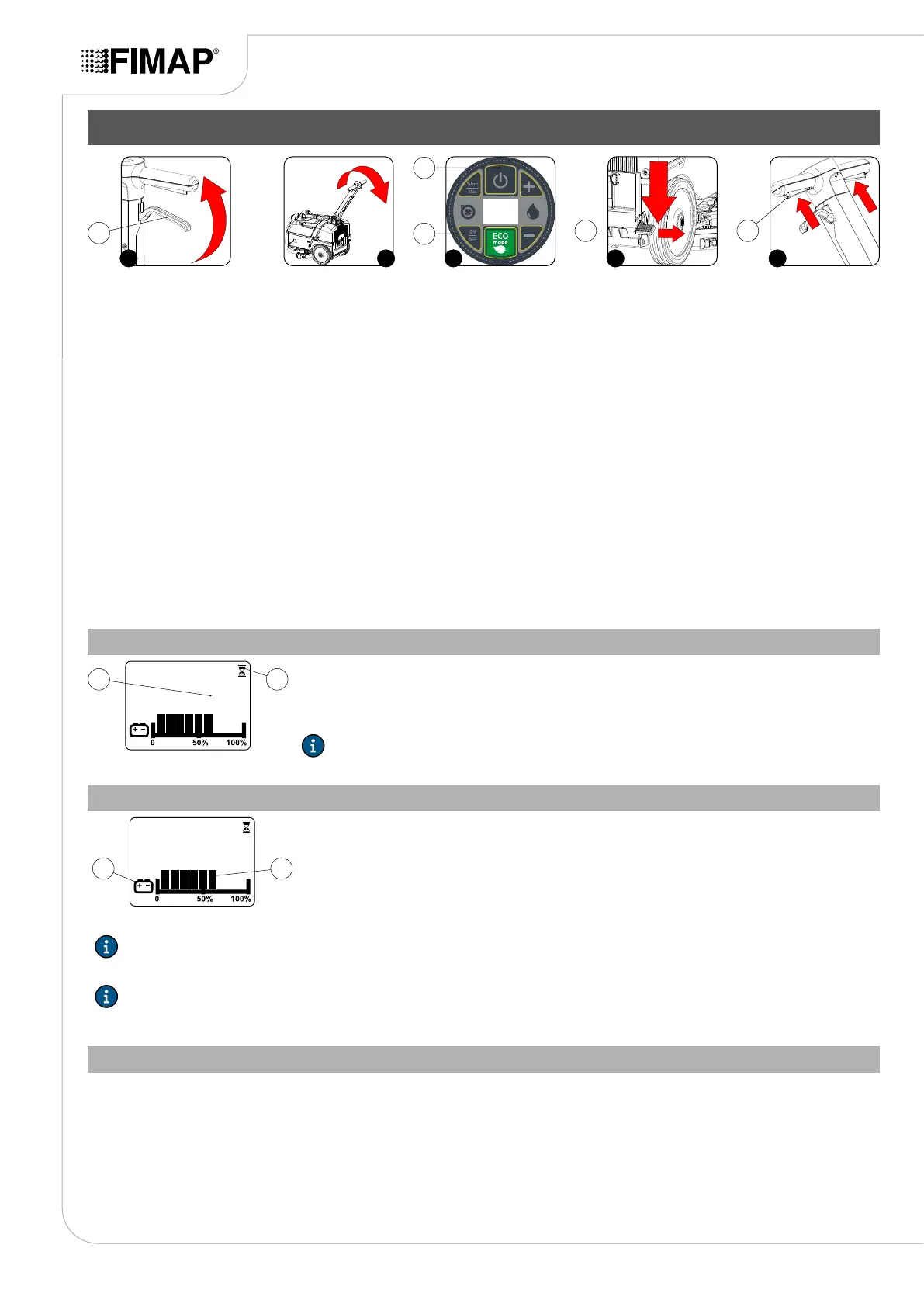 N.B.: a few seconds after the battery charge level reaches 20%, the brush motor switches o automatically. With the remaining charge it