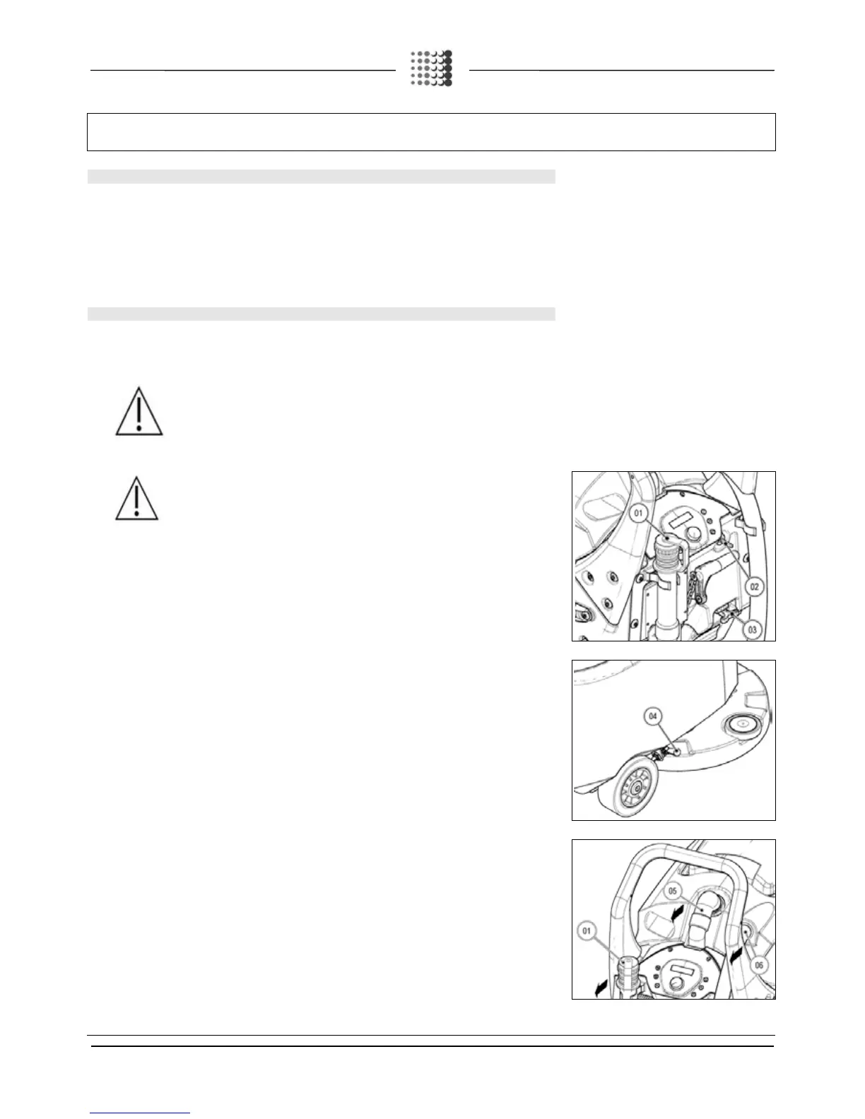 6. Secure the machine by applying the parking brake, move the lever (04) on the right side of the