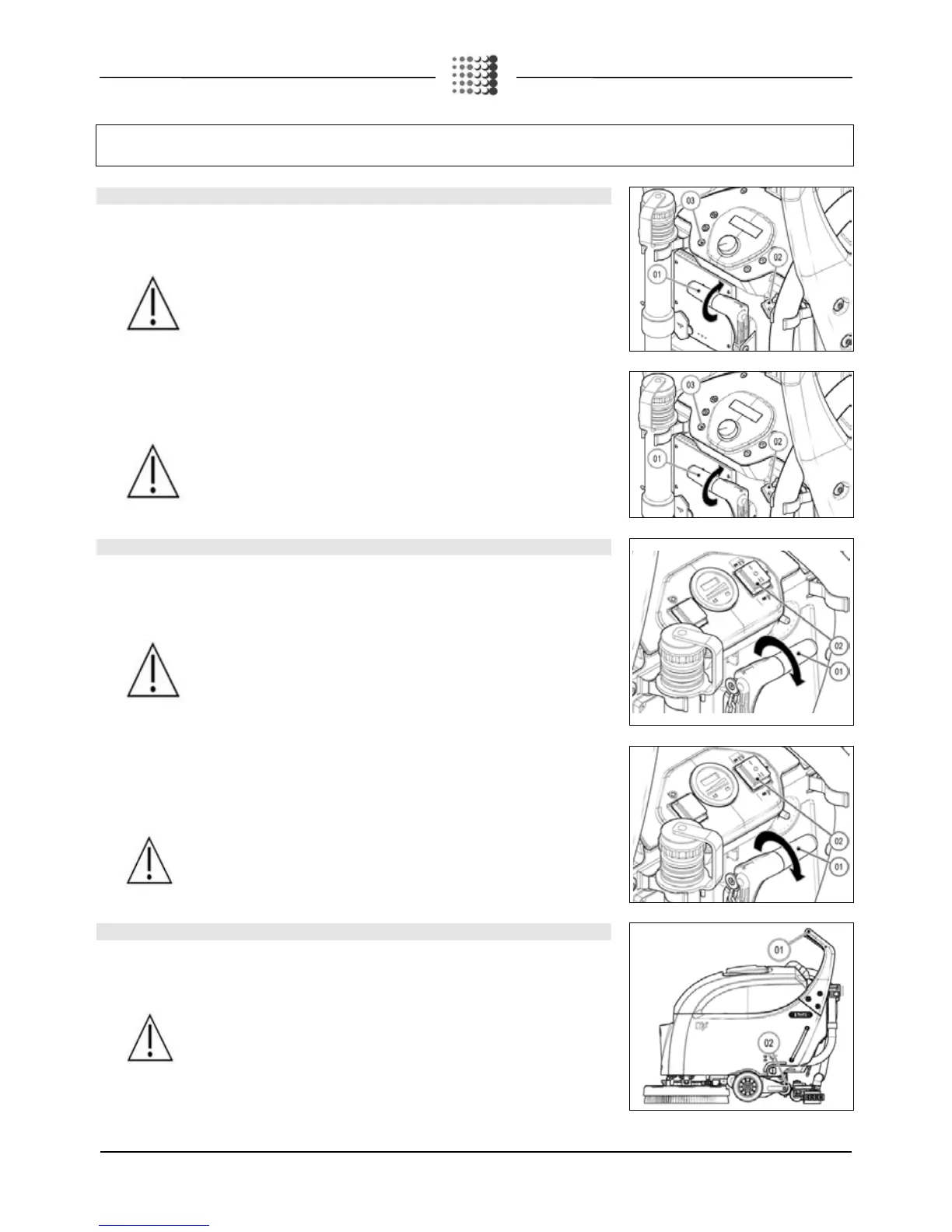 Check that the squeegee is raised from the ground; if not, lift using the lever (01).