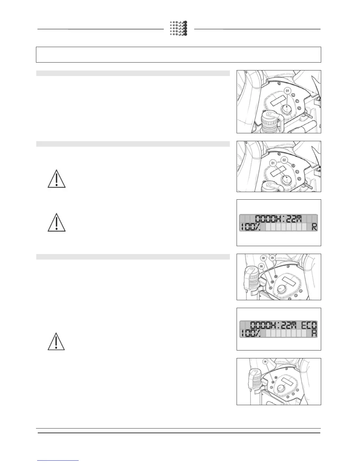 By activating “ECO” mode using the dedicated button (09), the energy used by the machine is reduced,
