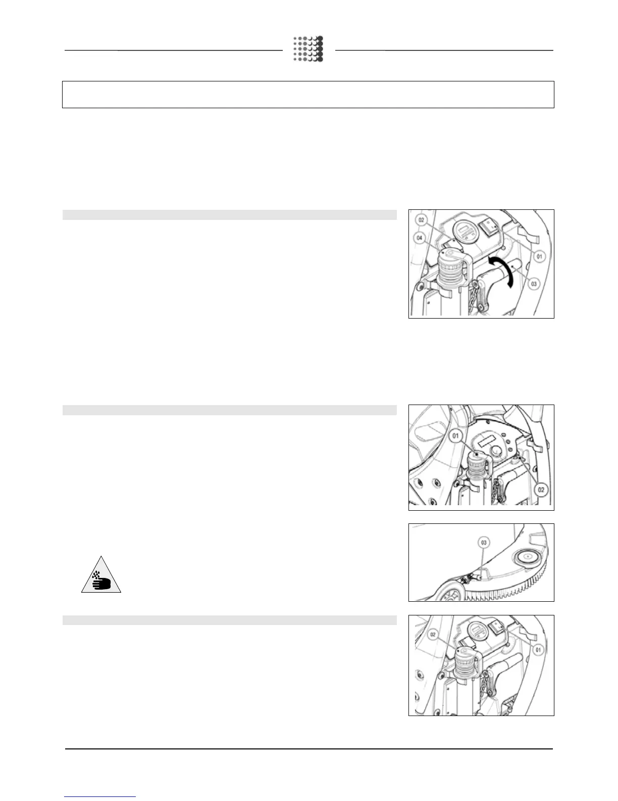 3. Raise the squeegee body from the ground by means of the lever (03) on the back of the machine.