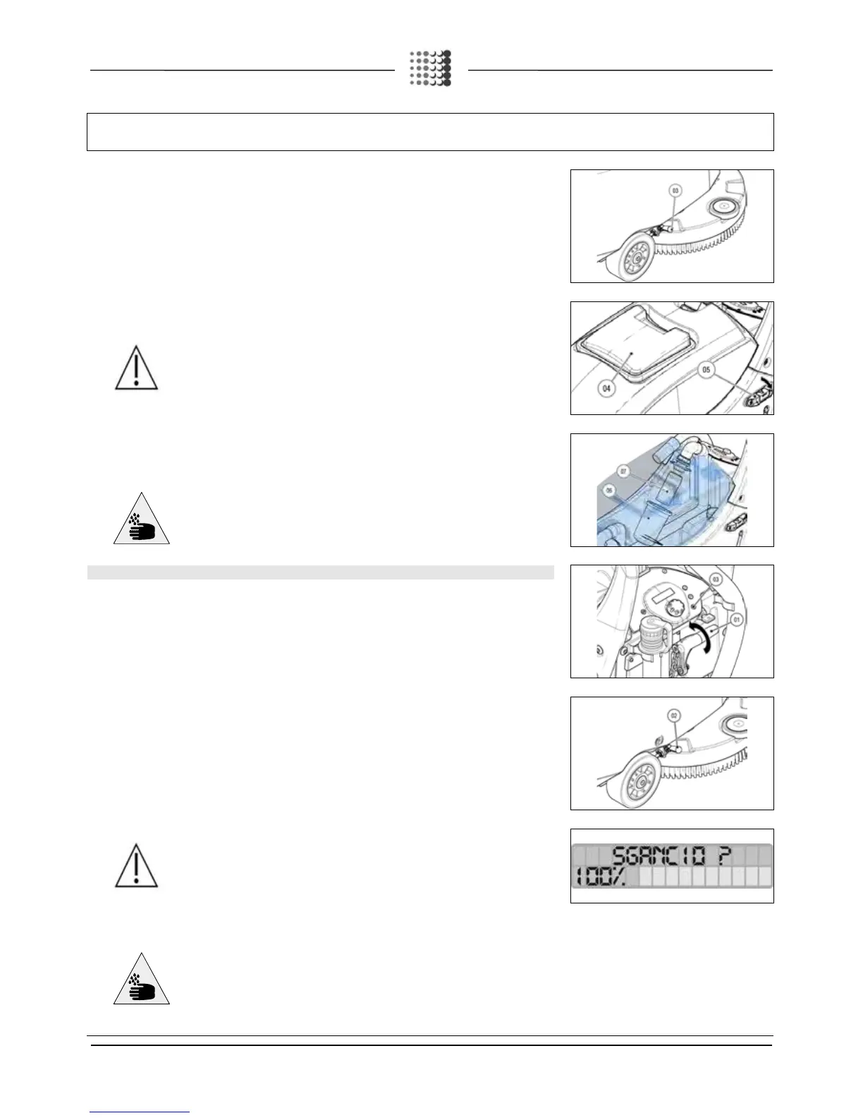 3. Engage the parking brake by means of the lever (03) on the right side of the machine (only for BT versions).