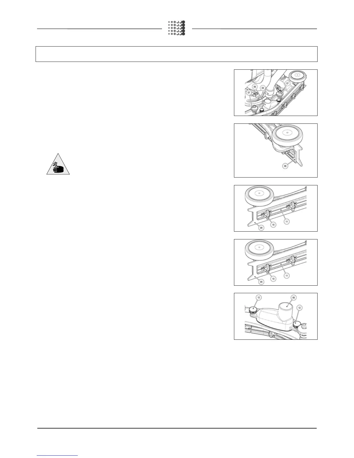 16. Tighten the knobs (12) that fix the vacuum nozzle (06) to the squeegee body.