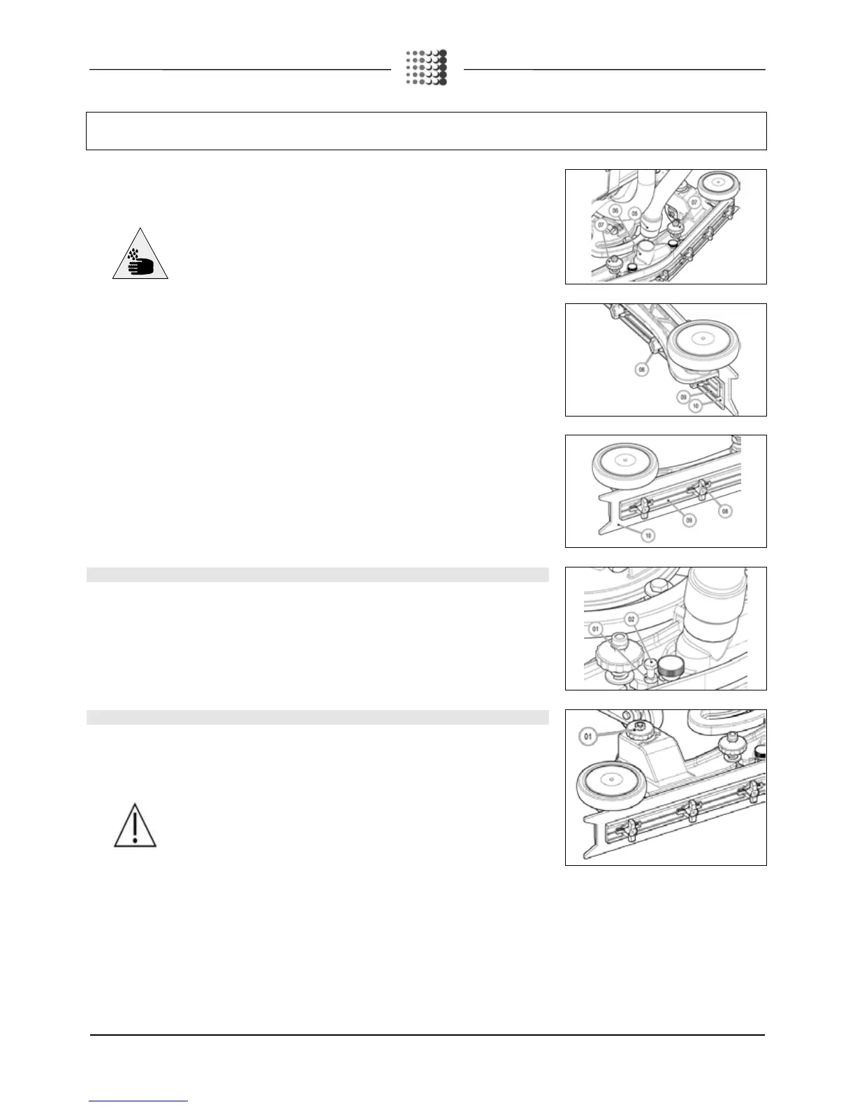 adjust the height, simply turn the knobs (01) on the squeegee support. To decrease the distance between